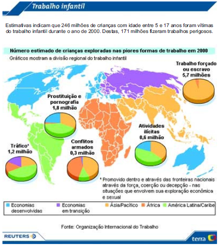 Entende-se por trabalho infantil toda a forma de trabalho físico e mental desempenhado por crianças e adolescentes que não possuem idade legal que lhes permita trabalhar. A inserção de crianças no “mundo do trabalho” de forma precoce tem repercussões no seu desenvolvimento físico, psíquico, emocional e social.
