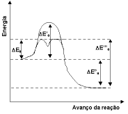 Analisando o diagrama, é correto afirmar que as variações de energia de ativação para as reações catalisada e não-catalisada são, respectivamente: