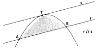 Essa área do segmento parabólico equivale a \frac {4}{3} da área do triângulo ABT seguinte, inscrito no segmento parabólico, sendo as retas r e s paralelas e T o ponto de tangência.