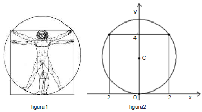 Na figura 2, tem-se um sistema de coordenadas cartesianas no qual foram desenhados uma circunferência δ, de centro C, e um quadrado, como se observa na figura do Homem Vitruviano.