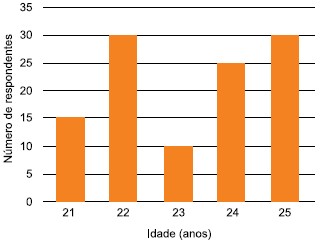 Uma pesquisa foi realizada com um grupo de pessoas cujas idades, em anos, pertencem ao conjunto {21, 22, 23, 24, 25, 26}. O gráfico registra as frequências absolutas dos entrevistados com menos de 26 anos.