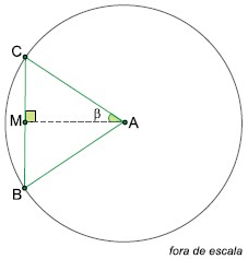 Sobre uma circunferência de centro A e raio 5 cm estão os vértices B e C de um triângulo ABC. O ponto M é médio do lado BC e β = MÂC, conforme mostra a figura.