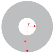O aquecimento uniforme desse disco até a temperatura θ causa um aumento ΔR em seu raio R. Esse mesmo aquecimento causa no raio r do orifício central