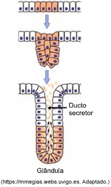 A figura ilustra o processo de multiplicação e formação das células que integram uma glândula humana.