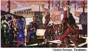 Julgue o item subseqüente, a respeito do poema de Drummond sobre o painel Tiradentes, de Cândido Portinari.