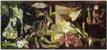 Independentemente de seu valor intrínseco como obra de arte, Guernica, ilustrada abaixo, de Pablo Picasso, exprime, simbolicamente, a denúncia da brutalidade fascista, retratando a destruição de uma aldeia da Espanha pela aviação de Hitler, em apoio às forças de Franco na Guerra Civil Espanhola (1936-1939), considerada balão de ensaio para a Segunda Guerra Mundial.