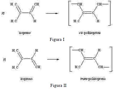 Assim como os polissacarídeos e as proteínas, a borracha utilizada em balões meteorológicos, por exemplo, se forma na natureza por meio de uma série de reações complexas de polimerização. A figura I acima mostra esse processo na forma de uma reação simplificada, na qual é formado o polímero cis-poliisopreno, um dos constituintes do látex. Um outro tipo de borracha natural é a gutta-percha, que também é um poliisopreno, porém com a configuração trans (trans-poliisopreno), como mostrado na figura II.Menos elástica que o cis-poliisopreno, a gutta-percha é usada na cobertura debolas de golfe, em equipamentos cirúrgicos, como isolante elétrico e em cabos subaquáticos.
