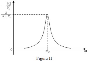 Os gráficos das figuras II e III apresentam, respectivamente, os comportamentos de \large {|V_R| \over V_g} e de \theta, em função de \omega. A freqüência \large \omega_c = {1 \over \sqrt{LC}}, mostrada nas figuras II e III, é denominada freqüência central do filtro e os valores de L e de C devem ser ajustados para que \omega_c coincida com a freqüência do sinal desejado. Note que, na freqüência central, \large {|V_R| \over V_g} é máximo e \theta é nulo.