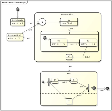 III. o pseudoestado X de Intermediário1 pode assumir as semânticas de H (shallow history) ou H* (deep history).