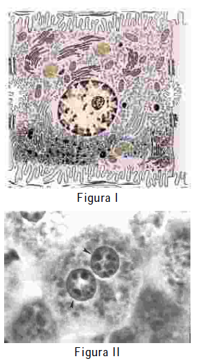 As figuras I e II ilustram, respectivamente, a ultraestrutura de um hepatócito e uma micrografia de um hepatócito binucleado, célula responsável pela conversão da fenilalanina em tirosina. Considerando essas informações, julgue os itens que se seguem.