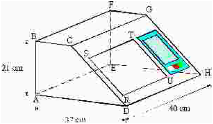 Considere que a urna eletrônica seja um prisma reto em que as faces da base do prisma são os trapézios congruentes ABCD e EFGH, como representado na figura acima. O lado AB é perpendicular a AD, assim como EF, a EH. O retângulo RSTU, localizado na face DCGH, representa a tela onde aparecem as informações relativas à votação que esteja sendo feita. Os lados AB, AD e DH medem, respectivamente, 21 cm, 37 cm e 40 cm, conforme indicado na figura. Considere também que a diferença entre o perímetro do retângulo DCGH e o perímetro do trapézio ABCD seja igual a 48 cm e que a soma das áreas desses quadriláteros seja igual a 1.883 cm².