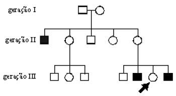 Humanos podem tornar-se incapazes de andar em decorrência de determinadas doenças conhecidas como distrofias musculares progressivas. A forma mais grave dessas doenças é a distrofia muscular de Duchenne, uma doença de origem genética com expressão fenotípica recessiva, em que ocorre uma mutação no gene localizado no cromossomo X, que codifica a proteína distrofina. Essa mutação causa níveis nulos ou bastante reduzidos dessa proteína nos músculos. Na ausência da distrofina, as fibras musculares passam por um processo de degeneração e atrofia. O heredograma acima representa agenealogia de uma família na qual houve ocorrência de distrofia muscular de Duchenne, indicada por símbolos com preenchimento preto.