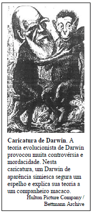 O século XIX destacou-se pelo triunfo da ciência. Entre as novas teorias, a mais polêmica foi a do naturalista inglês Charles Darwin (1809-1882), como mostra a figura abaixo.