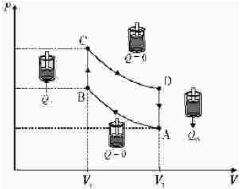 III de C para D (expansão): os gases expandem-se adiabaticamente realizando trabalho motor;