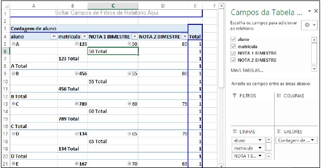 Qual funcionalidade existente no Excel está sendo utilizada?