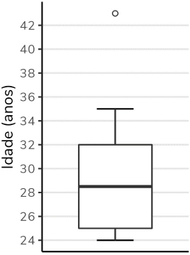 Observe o gráfico do tipo boxplot ou diagrama de caixas abaixo e assinale a opção correta a partir do que é mostrado: