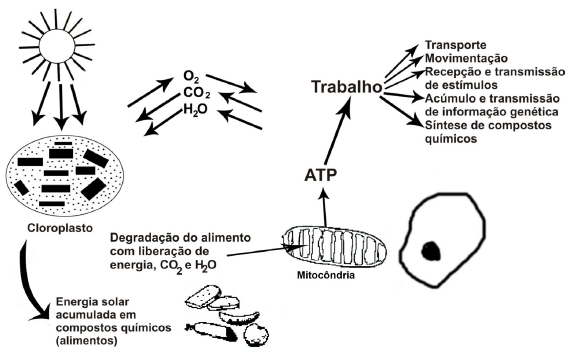 Conforme mostrado no esquema, a assimilação de energia pelos organismos autótrofos está ligada ao processo