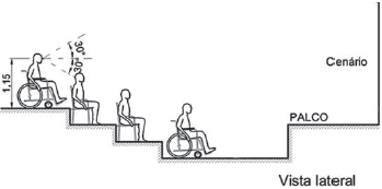 Para atender às normas da NBR 9050:2004, a localização da pessoa em relação à parede de fundo do palco deverá ser de