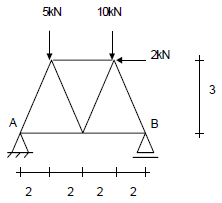 Para a treliça abaixo as reações de apoio, Ha, Va e Vb , em kN, são, respectivamente: