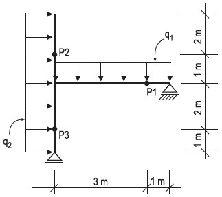 No ponto P1, o valor do momento fletor em kN\cdotm e o sentido de giro são, respectivamente