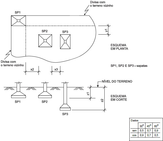 Considere os dados e croquis a seguir, que representam parte das fundações de uma obra, cujo solo é pouco resistente.