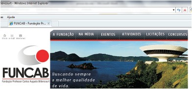 Observe a imagem parcial do site da FUNCAB na internet e considere que, ao posicionar o cursor sobre a palavra CONCURSOS, o formato do cursor é alterado para o formato de uma mão. Na configuração padrão do Windows Internet Explorer, ao clicar sobre a imagem: