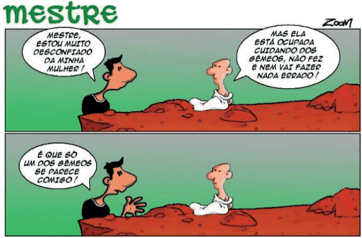 I. Na fala do mestre, há um entendimento de que a desconfiança só poderia ser por conta de a mulher estar fazendo algo que não fosse do conhecimento do marido.