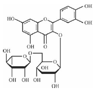 Visando à prevenção e ao tratamento de rugas, um farmacêutico criou um produto cosmético composto de dois glicosídeos flavonoides como substâncias ativas, cujas estruturas químicas estão ilustradas nas figuras 1 e 2, acima. O produto desenvolvido é comercializado na forma de solução aquosa.