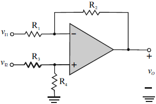 A combinação das configurações do amplificador inversor com o amplificador não-inversor, por meio de amplificador operacional (Amp Op), gera o circuito denominado amplificador de diferenças. Considerando o amplificador de diferenças apresentado na figura acima, julgue o item que se segue.