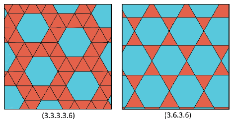 Um ladrilhamento é chamado de uniforme se é composto por polígonos regulares que preenchem todo o plano sem sobreposição e, além disso, o padrão é o mesmo em cada vértice. Para classificá-los, utilizamos uma notação dada por uma sequência de números que é definida desta forma: escolhemos um vértice qualquer e indicamos o número de lados de cada polígono que contém este vértice, seguindo o sentido anti-horário, iniciando com os polígonos de menos lados, conforme os exemplos: