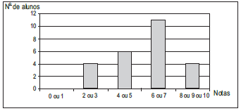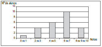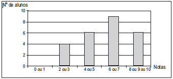Apenas uma das opções abaixo apresenta um gráfico de barras compatível com as notas apresentadas. Assinale-a.