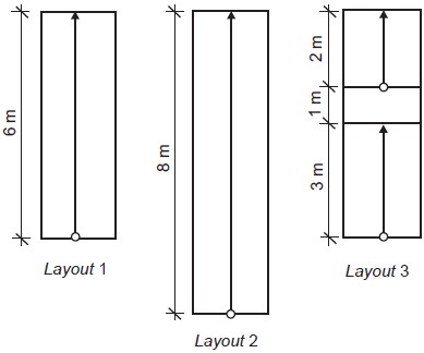 No projeto do canteiro de obras a equipe responsável apresentou 3 layouts, cada um com uma solução diferente para as rampas provisórias para acesso ao 1o pavimento, situado 3,00 m acima do térreo, conforme abaixo esquematizado.