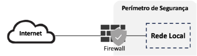 Uma organização utiliza um firewall de filtragem de pacotes para estabelecer um perímetro de segurança, de modo a proteger a rede local da empresa contra ameaças cibernéticas, conforme representado na figura a seguir.