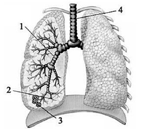 O sistema respiratório humano, representado na figura precedente, está envolvido com as trocas gasosas durante a respiração. Com base nessas informações, é correto afirmar que a estrutura indicada pelo número