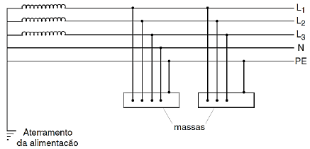 As topologias dos sistemas de aterramento em baixa tensão variam conforme a necessidade e tipo de instalação. O esquema a seguir representa um deles.