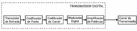 Considerando o diagrama de blocos simplificado de um transmissor digital anteriormente apresentado, julgue o item que se segue.