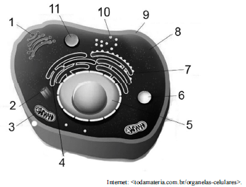 A figura precedente mostra vários componentes celulares, entre eles, a organela envolvida com o processo de divisão celular está indicada pelo número