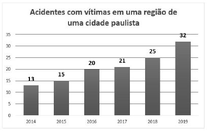 O gráfico a seguir apresenta os registros de acidentes com vítimas, por ano, em uma região de um município paulista.
