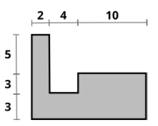 Indique a área sombreada da figura abaixo, sabendo que todas as medidas apresentadas estão em metros: