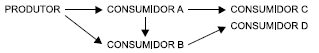 O esquema representa, resumidamente, uma teia alimentar, na qual as setas mostram a relação entre os níveis tróficos. Se ocorrer uma drástica redução na população do CONSUMIDOR B, é correto afirmar que