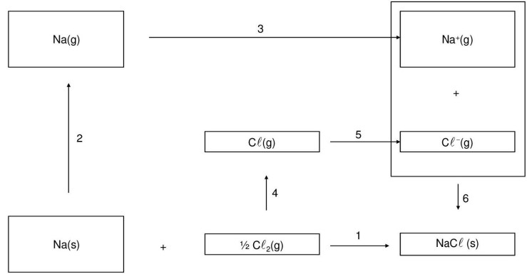 Analise o esquema de formação do NaCll(s) a partir do Na(s) e do Cl2(g).
