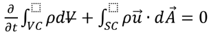 O princípio de conservação de massa nos fornece a seguinte equação para o volume de controle (VC), superfície de controle (SC) e com integração no volume (d