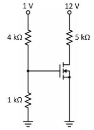 Considere o circuito abaixo, que utiliza um transistor NMOS do tipo enriquecimento.