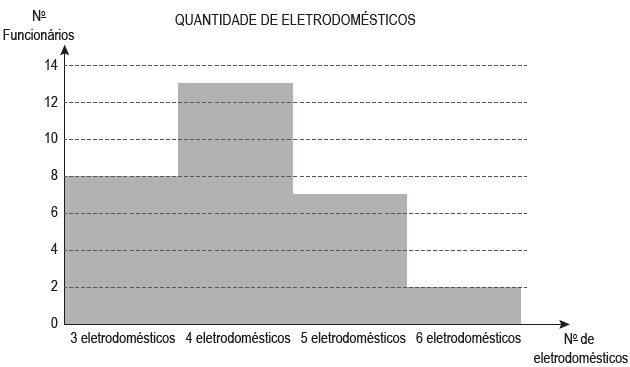Uma pesquisa foi feita com os funcionários de uma empresa, acerca da quantidade de eletrodomésticos que cada um possui em sua casa. Os dados obtidos na pesquisa estão representados no histograma.