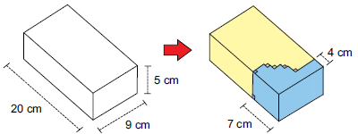 Um paralelepípedo será dividido em dois prismas, conforme mostra a figura.