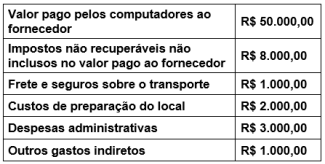 A Assembleia Legislativa do Rio Grande do Norte está renovando seus equipamentos de informática e, para isso, adquiriu novos computadores para serem utilizados por seus funcionários. Assim, a entidade incorreu nos seguintes gastos e desembolsos nessa aquisição: