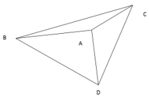 Uma poligonal de três lados foi levantada pelo método da irradiação. O rumo da linha AB foi de 85º30’00”SO. Conhecendo os ângulos internos e distâncias medidas determine a área da poligonal.