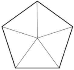 Um pentágono regular pode ser divido em 5 triângulos iguais, como mostra a figura a seguir.