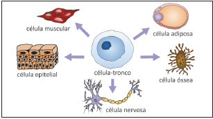 Pesquisas e terapias com células-tronco têm se mostrado cada vez mais promissoras pela possibilidade de seu uso no tratamento de diferentes tipos de doenças, como câncer e doenças degenerativas. As células-tronco podem se diferenciar em células especializadas, conforme exemplificado a seguir.