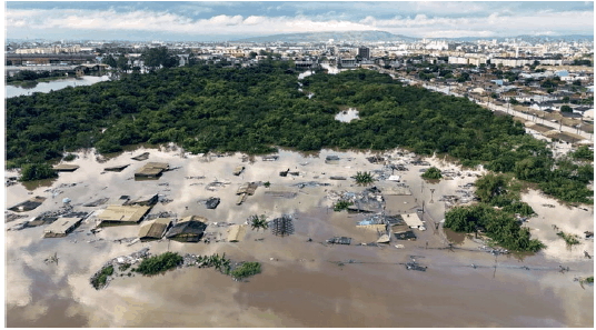 Neste ano, o Brasil acompanhou com tristeza a tragédia das enchentes no estado do Rio Grande do Sul, causadas por fortes chuvas que atingiram o estado gaúcho do mês de abril até o mês de maio. A tragédia se tornou o maior desastre climático da história do estado, tendo atingido 95% dos seus municípios e deixando muitas cidades submersas, conforme se percebe na imagem.